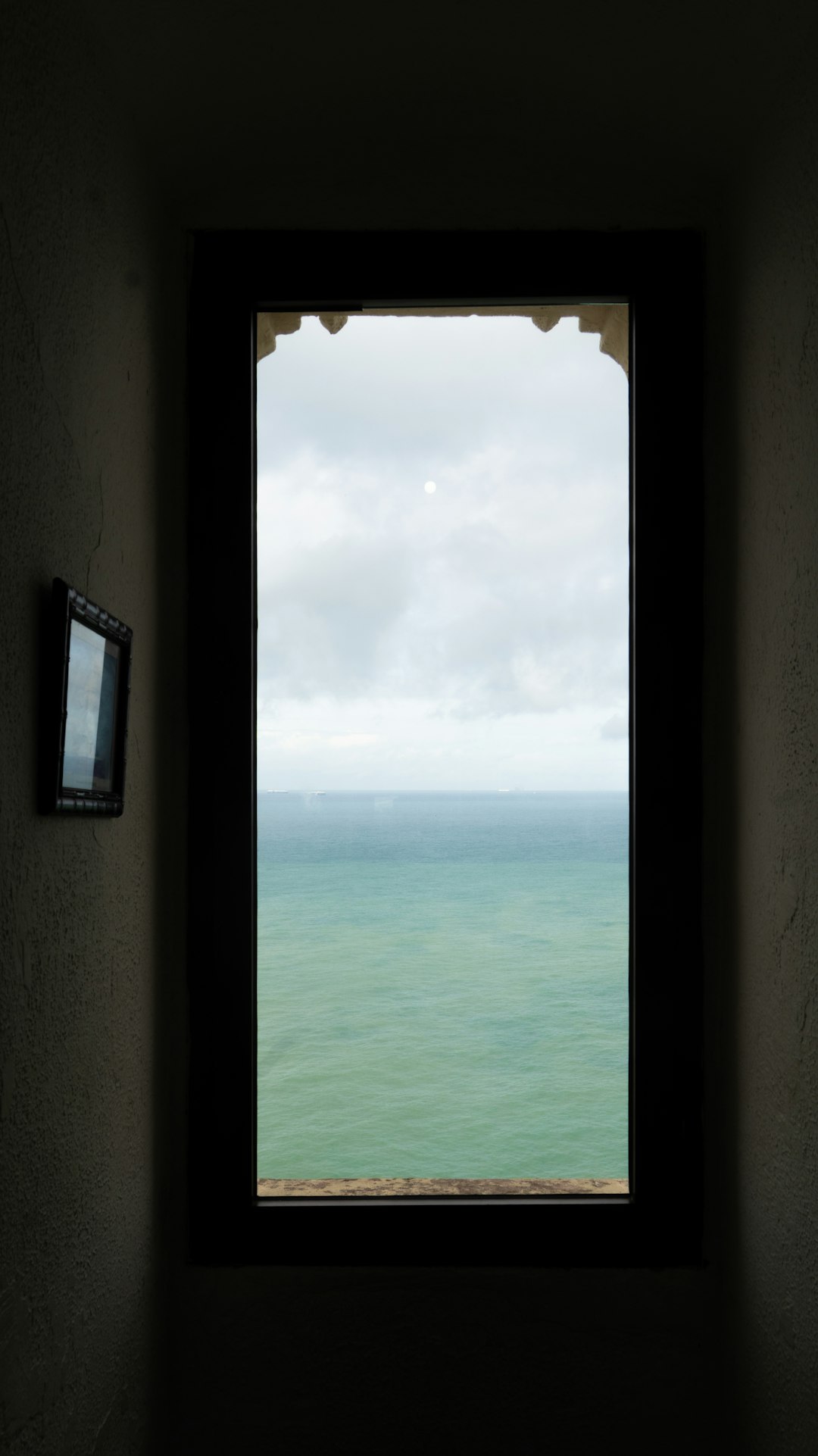 The elevation makes the difference. From the first floor, the sea expands into something more generous, less framed. This room has its own private balcony — not large, but perfectly proportioned for morning coffee or evening wine. Glass doors invite the breeze. The room itself is uncluttered: a bed dressed in natural linen, a single armchair, a side table. The ensuite is compact but complete, finished in the same warm stone as the rest of the house. You feel the height here, the slight remove from the ground floor's immediacy, and it's a welcome distance.